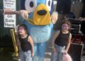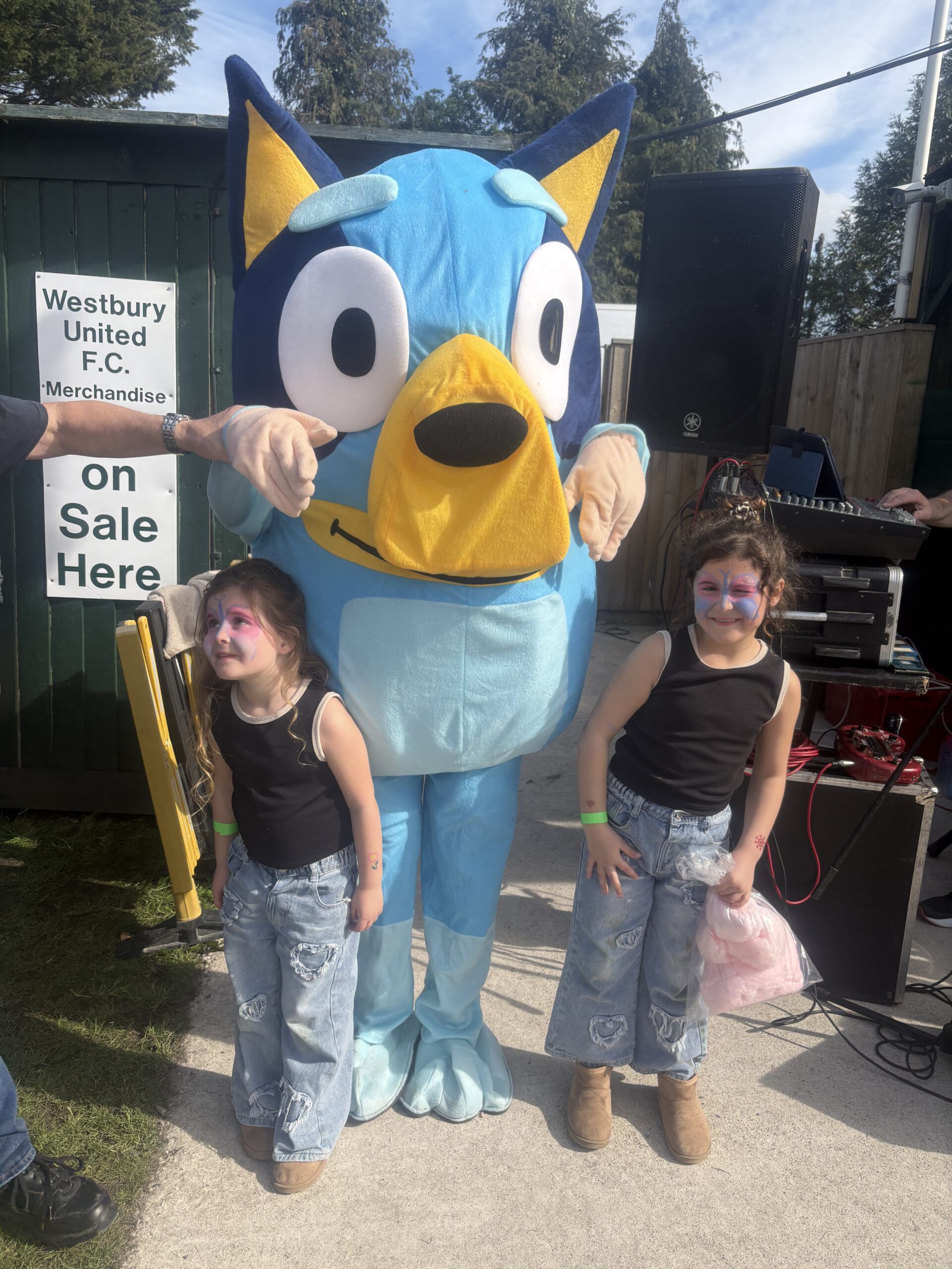 Below left: Rachel and Drae with Daz Sims, who is helping fundraise. Below right: Kids with Bluey