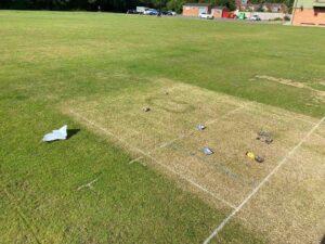 Dan said, “I arrived at the ground Saturday morning to do the final preparations for the game ahead, I took the covers off protecting the pitch from the sun to notice an awful lot of litter on the pitch.