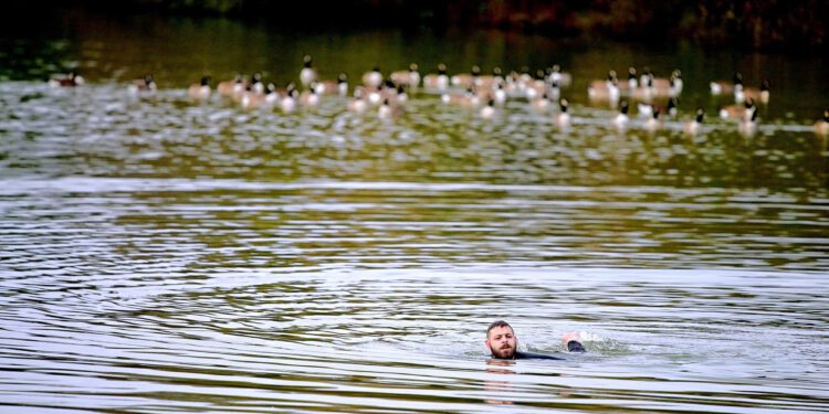 A MOBILE phone shop manager from Westbury braved Boxing Day temperatures to swim the town’s Eden Vale Lake – in memory of his father and to raise funds for the RNLI.