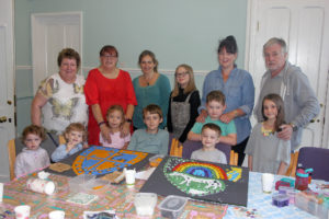 Picture: Ria-Jane Cann with children and adults at one of the mosaic workshops.