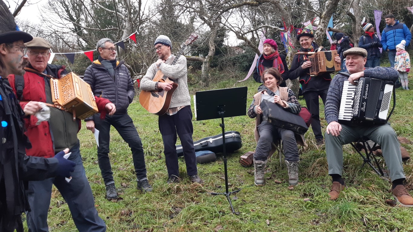 The wassailing event, organised by Dan and Anya Loughran, was about more than just making a lot of noise, however, because the gathering was accompanied by local folk musicians who provided both the background music to the downing of cider punch (made from the apples from Bratton’s orchard) and apple cake made by local villagers. There was also Morris dancing from Dan’s old group, who travelled from Bristol to take part in the event.