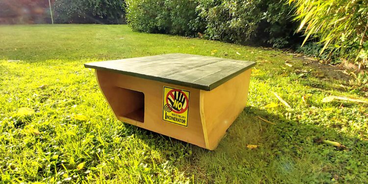 WESTBURY furniture designer, Dan Gmaj, has built this custom made hedgehog house and will give it away to the supplier of the best photograph of a legal protest display in objection to the proposed NRL / Hills Incinerator plant in Westbury.