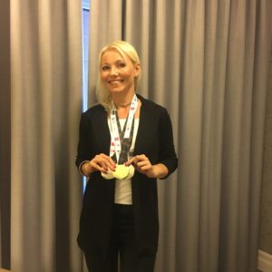 Christine said, “I’m very happy with how the games went – it was an amazing experience. My eldest daughter, Leanne, and myself flew up to Glasgow for the games. I was a bit unsure if I’d even be able to run very well as I’d been training hard but picked up a foot injury a couple of weeks prior to the games. I wouldn’t have pulled out though because the people involved with the games are all such a huge inspiration and have overcome so much, so I’d give it my best any way. I was taped up and helped by an amazing team of physiotherapists who help at all the events.
