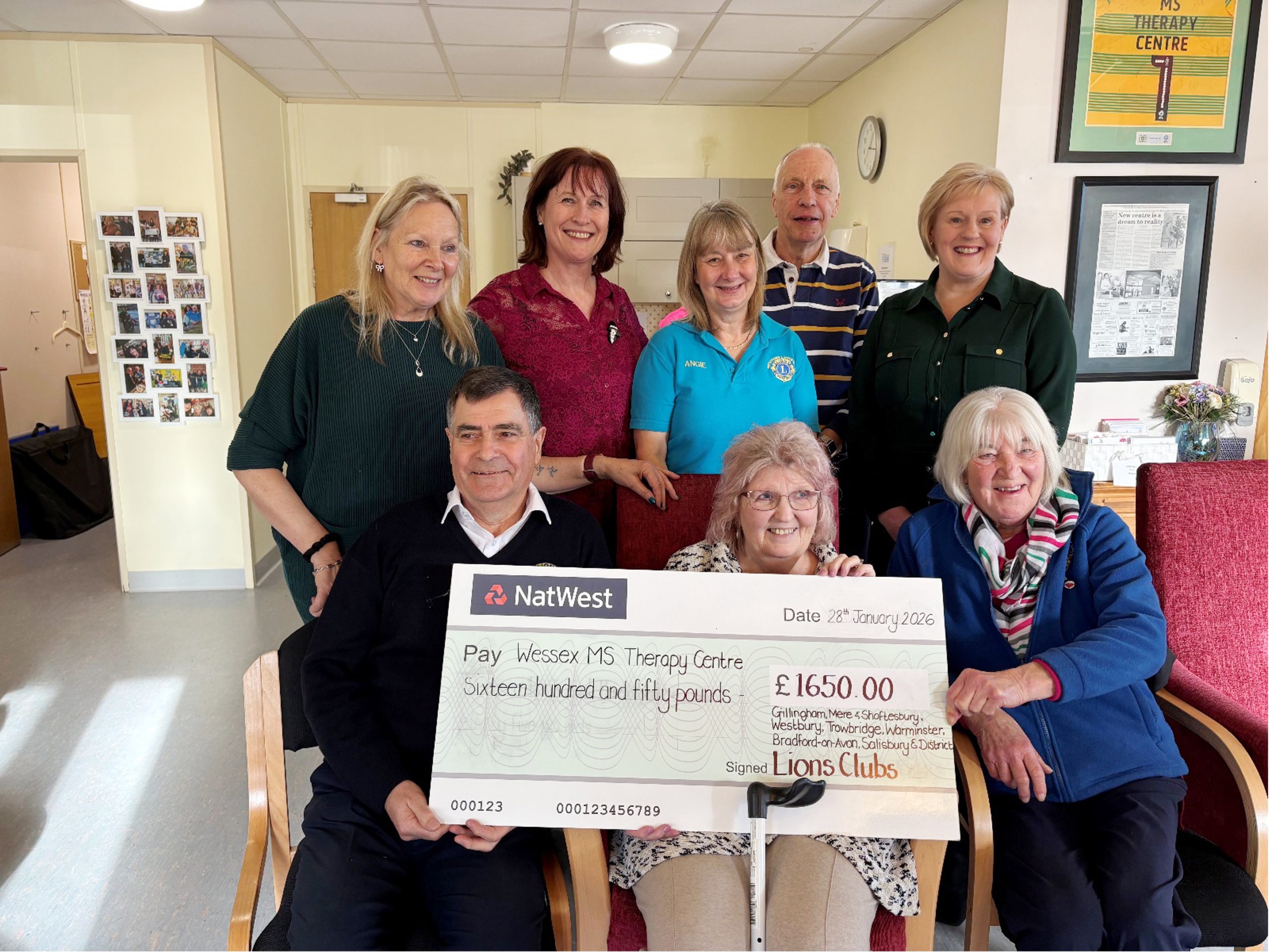 The clubs from the local zone of Lions International – Bradford on Avon, Salisbury, Trowbridge, Warminster, Westbury, and Gillingham, Mere and Shaftesbury – came together to fund a 10-litre compact oxygen concentrator for the Wessex MS Therapy Centre in Warminster.