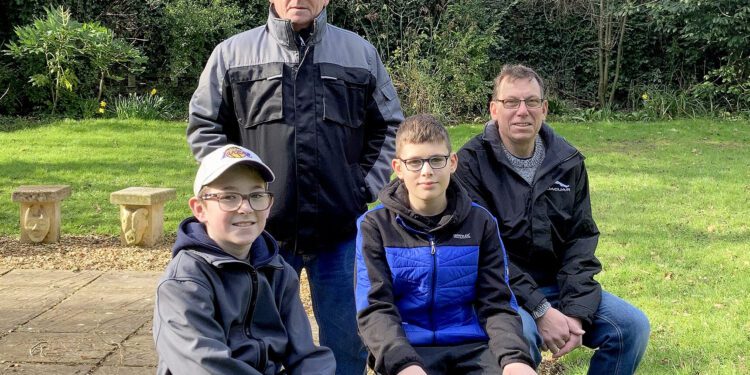 Brian and Martin Turk of Westbury firm StoneKraft, with Brian’s grandsons, Harvey Randall and his cousin Alfie Turk sitting on the Victoria Garden stone seats they helped to repair.