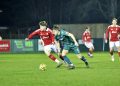 The Town defence was having to work hard against a fully motivated Westbury team with Bole leading from the front and Jack Witcombe dominating the midfield; Witcombe played a quality ball to Stewart who turned and hit it just over then from Summers’ kick the ball was headed by Witcombe to Stewart then onto Bole but he headed wide again!
