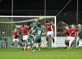 In the closing stages Restorick headed off target from another Jordan set piece then Foye was shown a straight red card for kicking out at Hulbert.