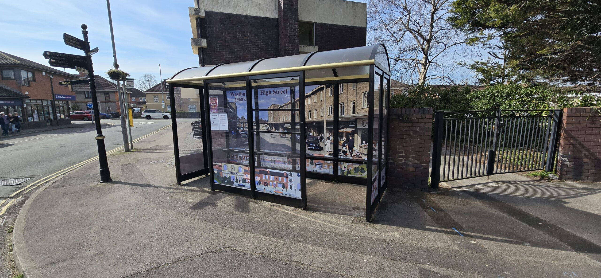 Westbury Town Council has added Perspex panels at the bus stop, which now feature a large vinyl showing the High Street as it looked in the 1960s, along with artwork representing the Vision for Westbury project.