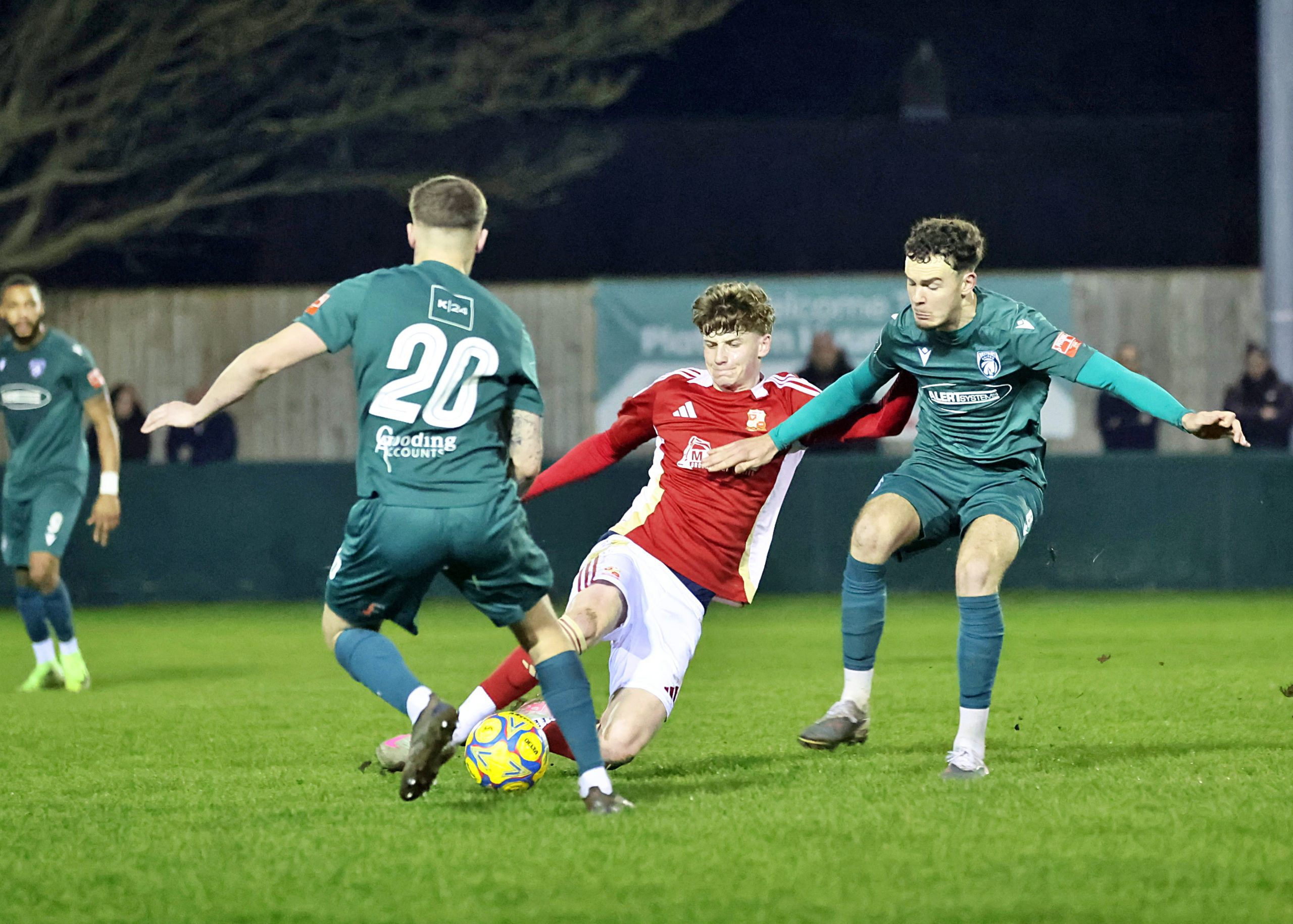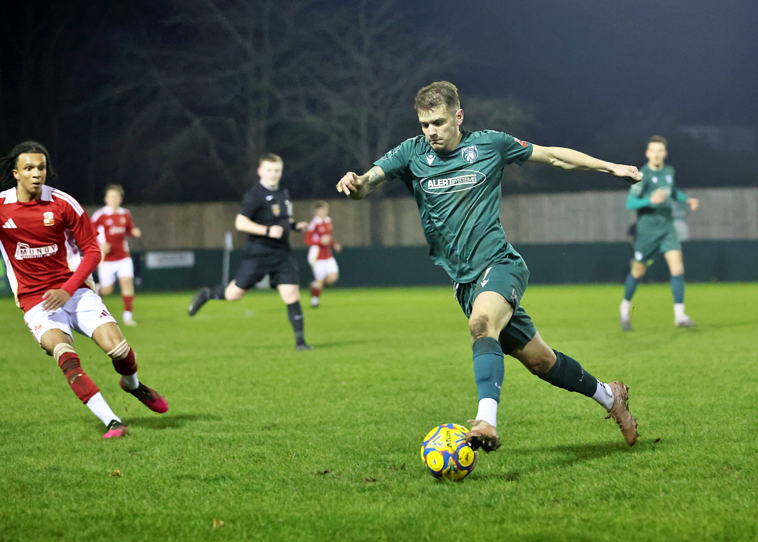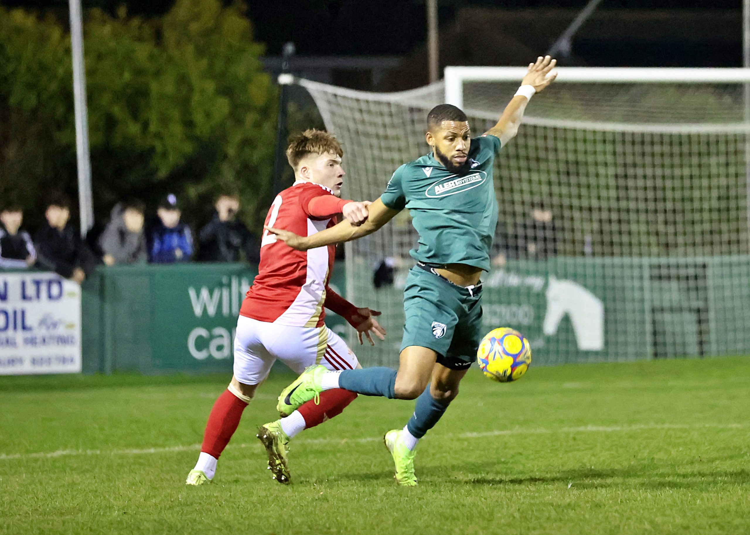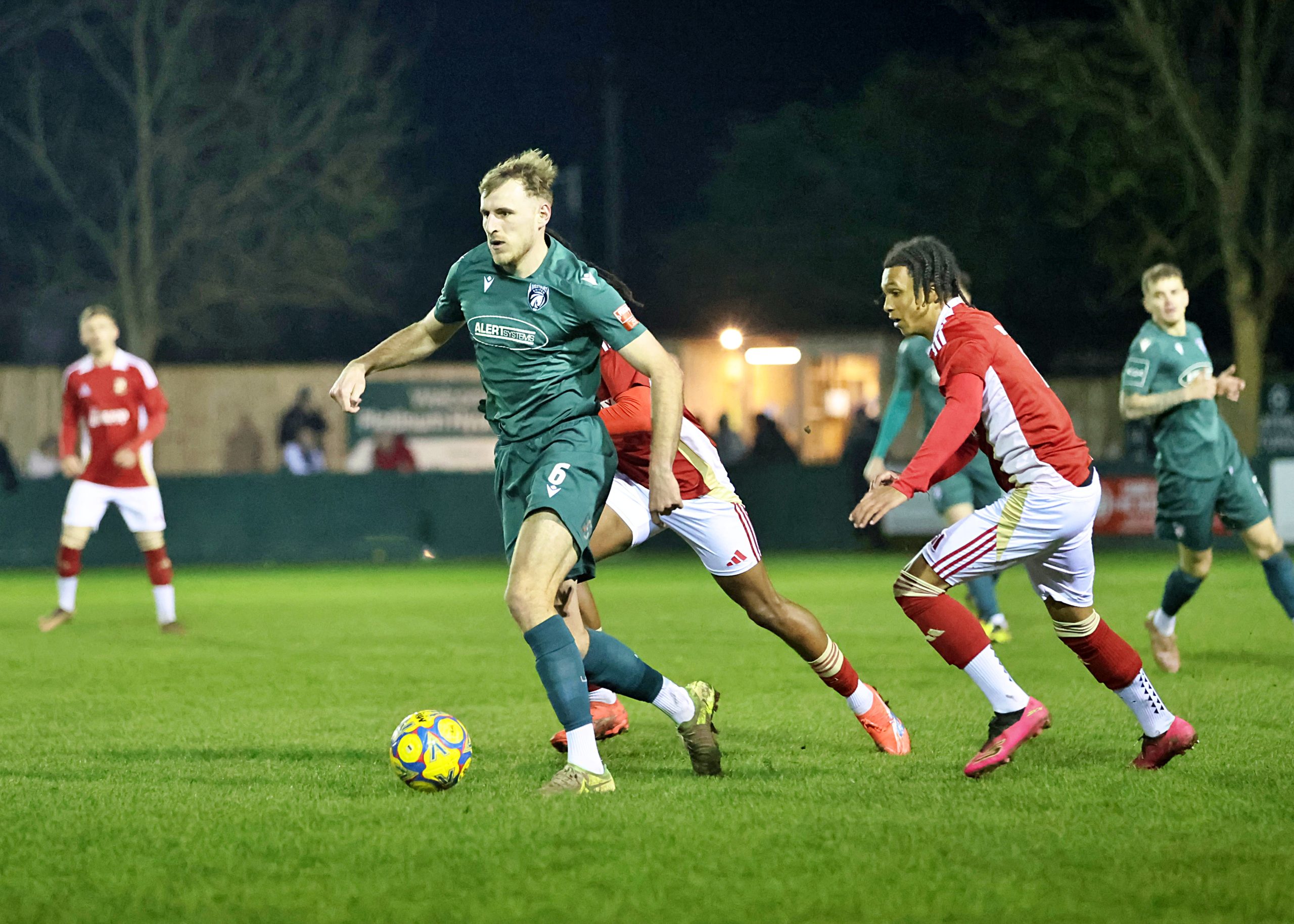The Town defence was having to work hard against a fully motivated Westbury team with Bole leading from the front and Jack Witcombe dominating the midfield; Witcombe played a quality ball to Stewart who turned and hit it just over then from Summers’ kick the ball was headed by Witcombe to Stewart then onto Bole but he headed wide again!