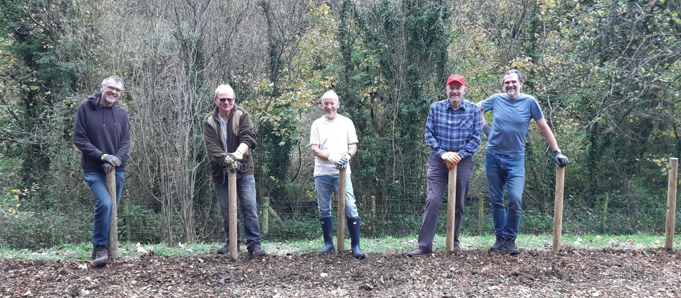 The small team of orchard volunteers, led by Steve Crosby, recently added posts and rope around the newly created community space at Reeves Orchard, to prevent anybody falling down the slope. They also covered the path with wood chippings to make it less muddy.